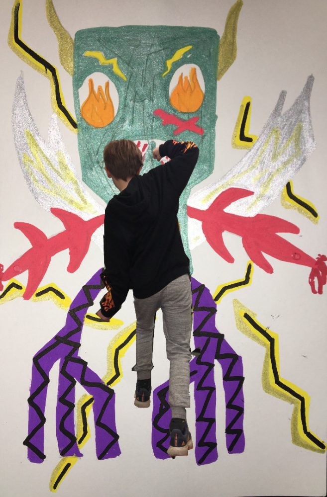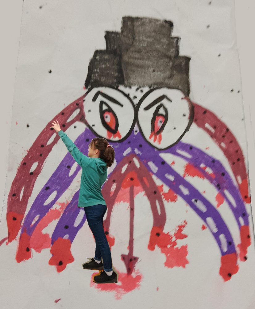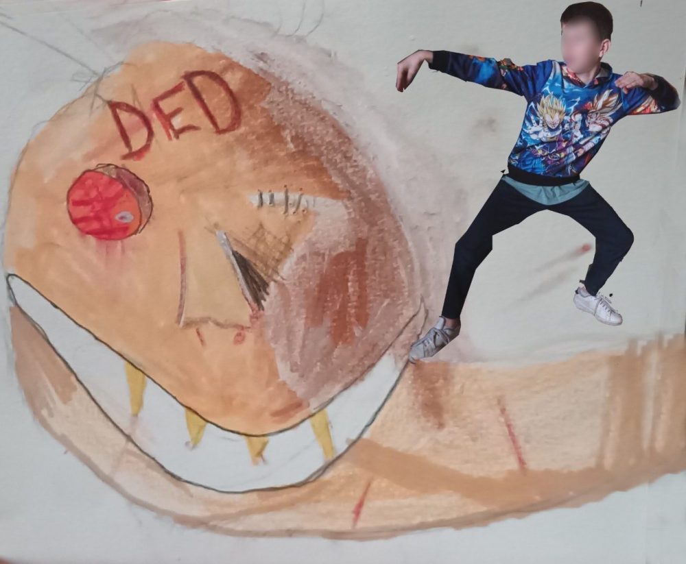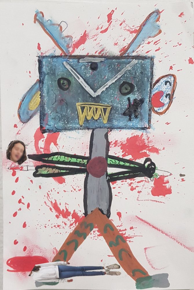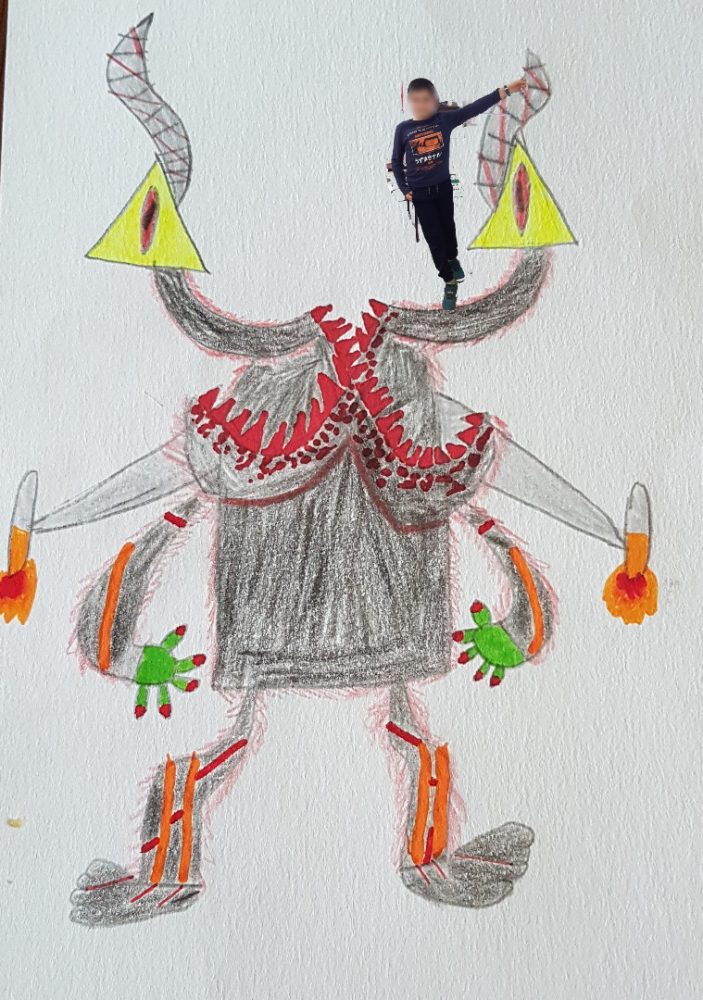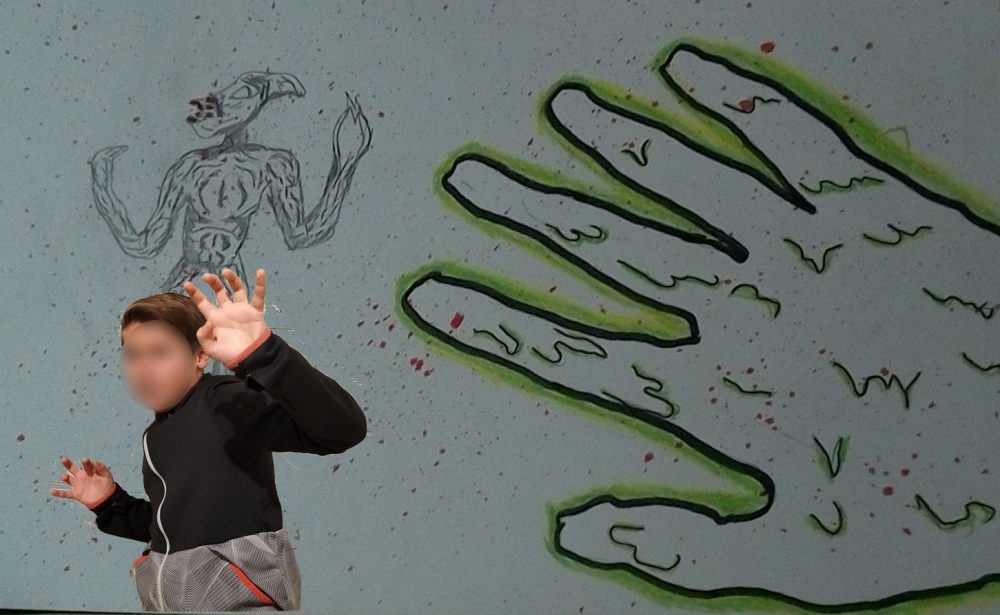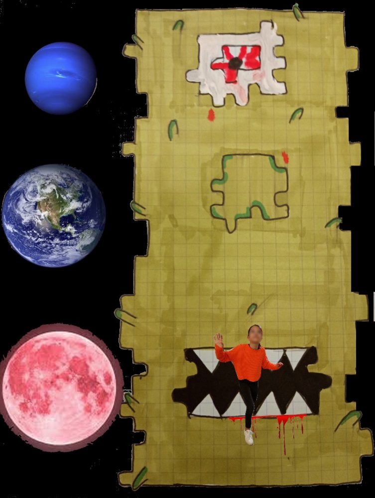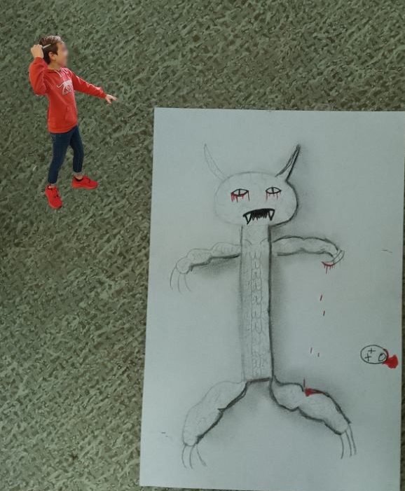 Après un travail de réalisation plastique représentant un monstre le plus effrayant possible, les élèves ont découvert le collage numérique pour s’insérer dans leur travail : terrifiant !!!