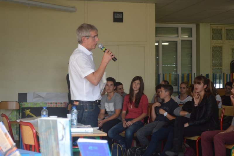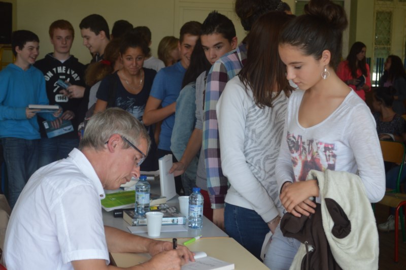 Le vendredi 03 octobre 2014 un auteur de littérature jeunesse est venu rendre visite aux 6 classes de troisième, il s’agit de Jean-Claude Mourlevat habitant de la région, puisqu’il vit non loin de Saint-Etienne à Saint-Just Saint-Rambert exactement. Auteur de La rivière à l’envers, Combat d’hiver, Terrienne entre autres.