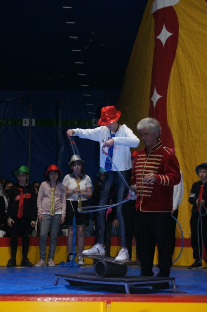 Pendant les activités,  les personnes du cirque ont sélectionné des élèves dans différents domaines : trapèze, boule d’équilibre, lasso, rolabola ou rouleau américain.